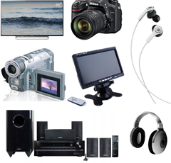 CRT電視機、LCD電視機、背投電視機、家庭影院、音箱、音響、功放、錄像機、卡拉OK機、碟機、DVD、VCD、EVD、MP3、MP4、MP5、錄音機、收音機、錄音筆、游戲機、答錄機、耳機、耳麥、擴音器、喇叭、車載播放器、數碼相機、數碼攝像機、卡帶機、復讀機 、點歌機、車載DVD、車載MP4、投影幕、監視器、低音炮、隨身聽、車載顯示器、電聲喇叭、麥克風、多媒體視頻、室內音柱、USB娛樂影音棒、頭枕DVD、留聲機、學習機、車載廣告機、數碼相框、電子琴、電吉它、自動電唱機、光盤機、磁帶錄放機、光盤刻錄機等。