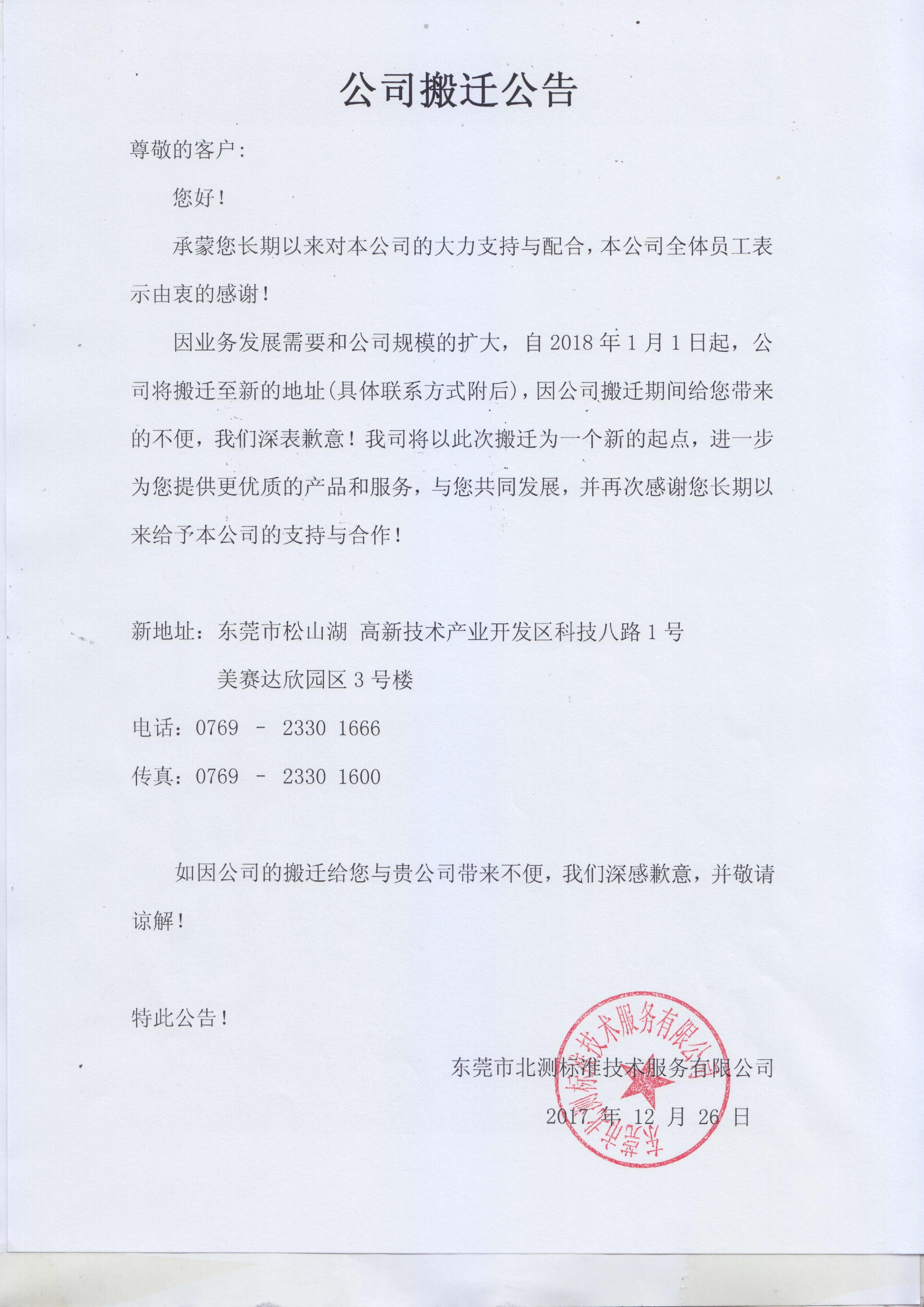 因業務發展需要和公司規模的擴大,自2018年1月1日起,公司將搬遷至新的地址(具體聯系方式附后),因公司搬遷期間給您帶來的不便,我們深表歉意!我司將以此次搬遷為一個新的起點,
