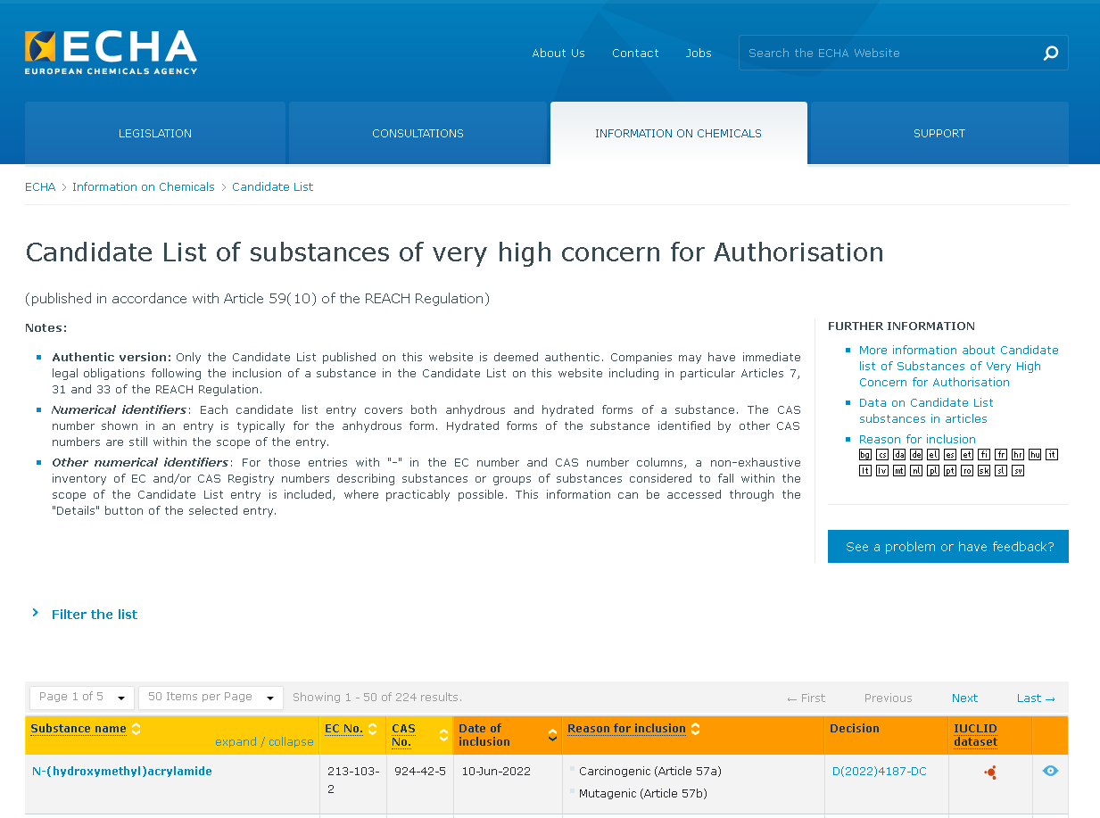 官網地址:https://echa.europa.eu/candidate-list-table