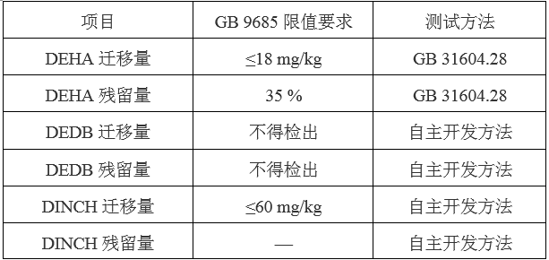 表1國標(biāo)GB9685中非鄰苯類塑化劑的限值要求